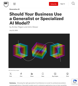 Should Your Business Use a Generalist or Specialized AI Model? by Amber Nigam and John Glaser, Jul 23, 2025